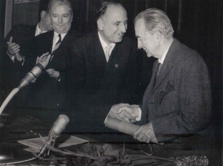 - Rămâne impresionat de realizările tehnice postbelice, caracterizând dezvoltarea economică a României din acea perioadă ca „explozivă”. Îi este decernată Diploma de Doctor Honoris Causa de către Institutul Politehnic, noua titulatură a fostei Şcoli Naţionale de Poduri şi Şosele. (Prima diplomă de acest fel realizată până atunci în România)