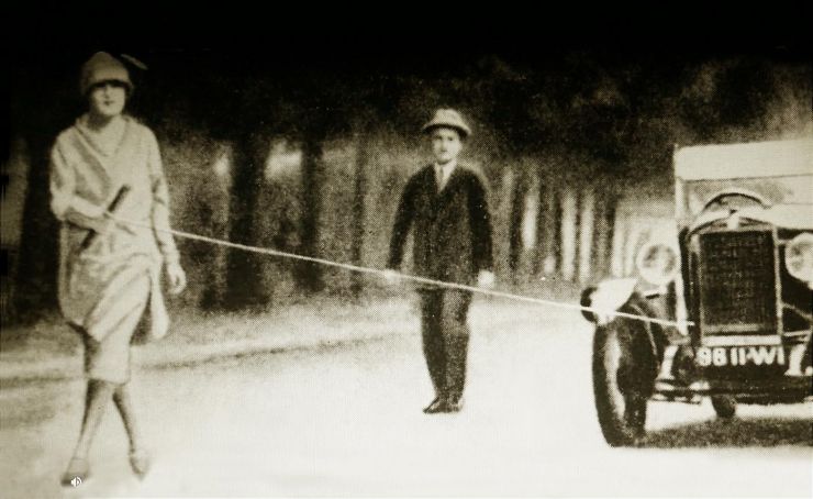 - Sandra, soţia lui Gogu Constantinescu, cum „se plimbă” prin parc „braţ la braţ” cu automobilul echipat cu un convertizor sonic, printr-o simplă legătură făcută la carburator de un lanţ ţinut la celălalt capăt de Sandra.