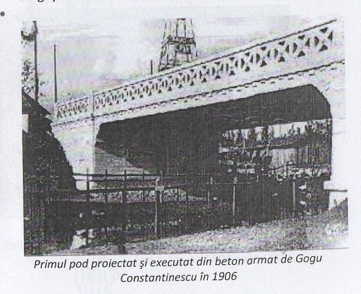 - Gogu Constantinescu s-a preocupat de modul în care trebuie calculate construcţiile de beton armat. A realizat primul pod de beton armat în ţară cu o deschidere de 12 m in anul 1906, in parcul Caril I si numeroase poduri de beton armat in tara.
