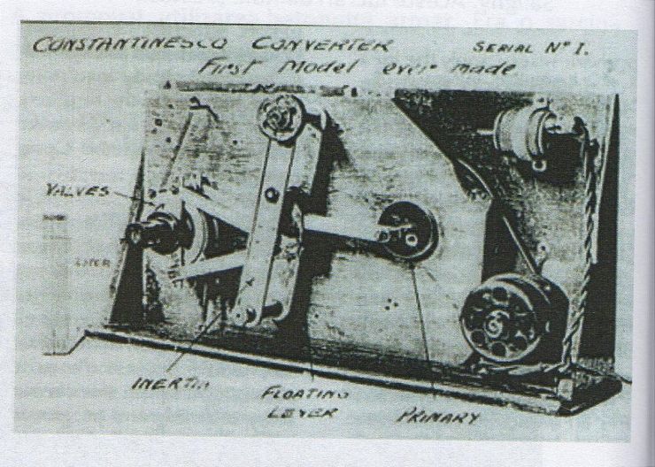 - Convertizorul sonic a fost prezentat la expoziţia de la Londra în 1924, fiind capabil să transforme mişcarea de rotaţie a unui arbore motor primar într-o mişcare cu alte caracterstici la un alt ax motor, între cele două rotaţii interpunându-se o mişcare oscilantă.